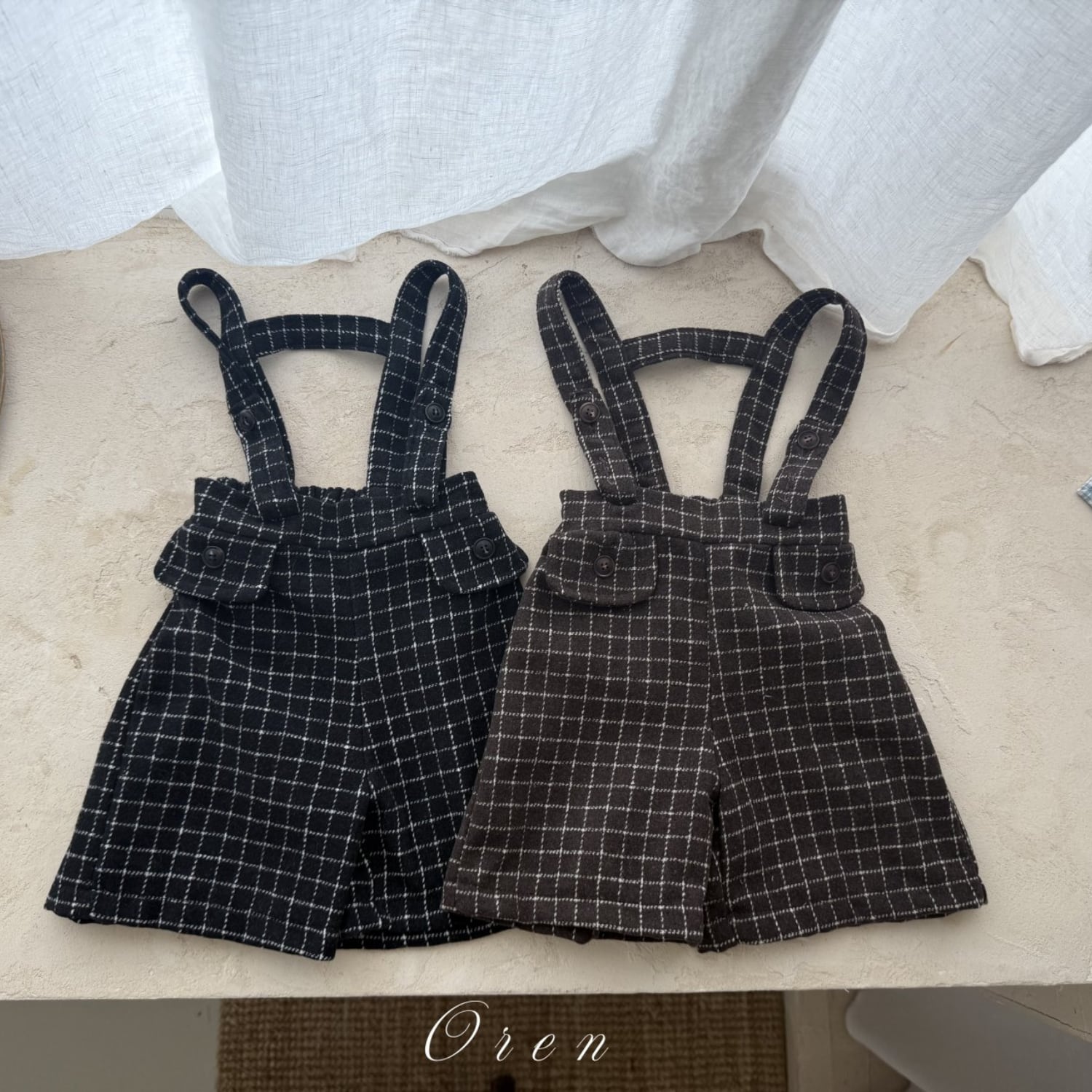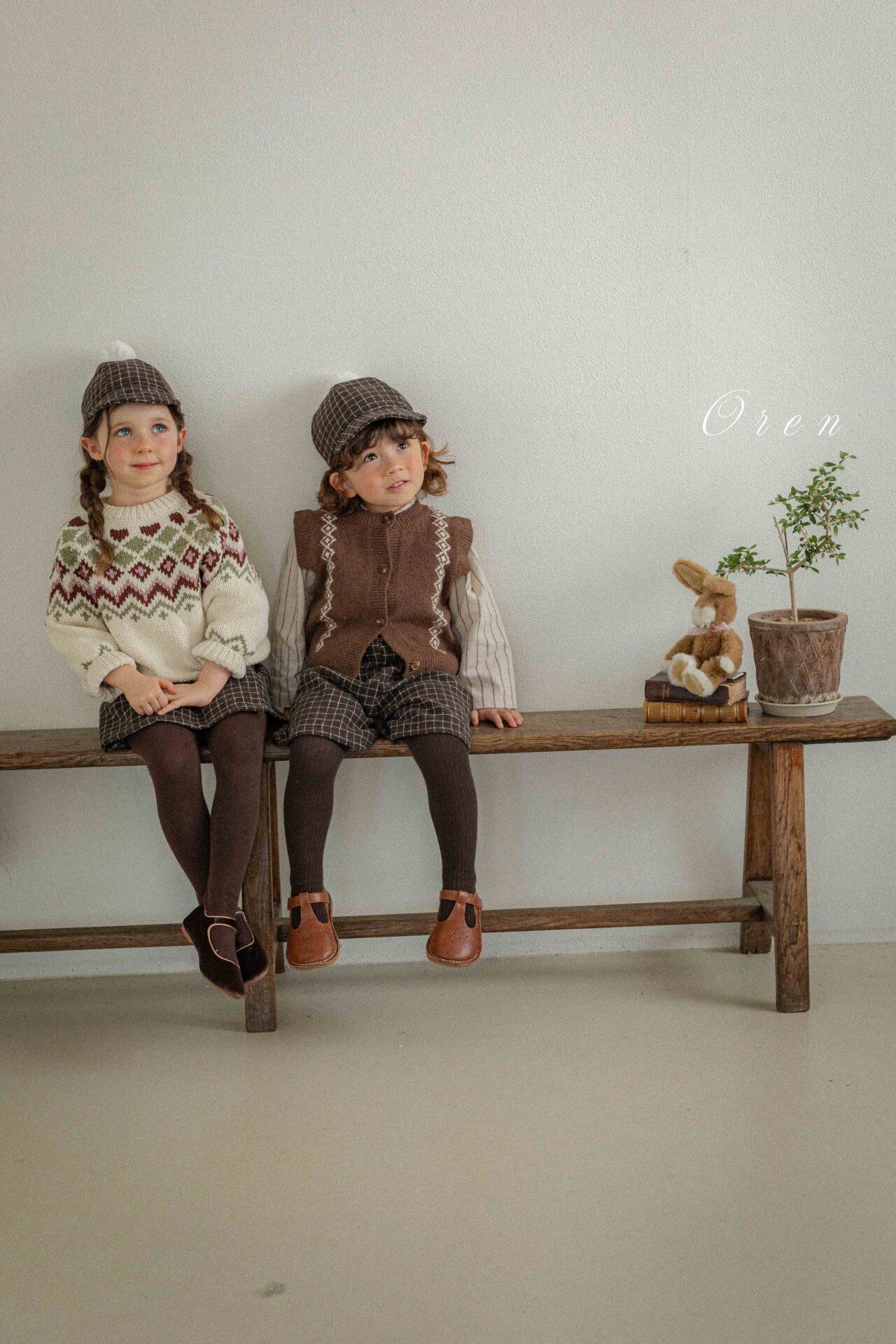 《予約》oren ¨ bebe) miel wool check suspender pants