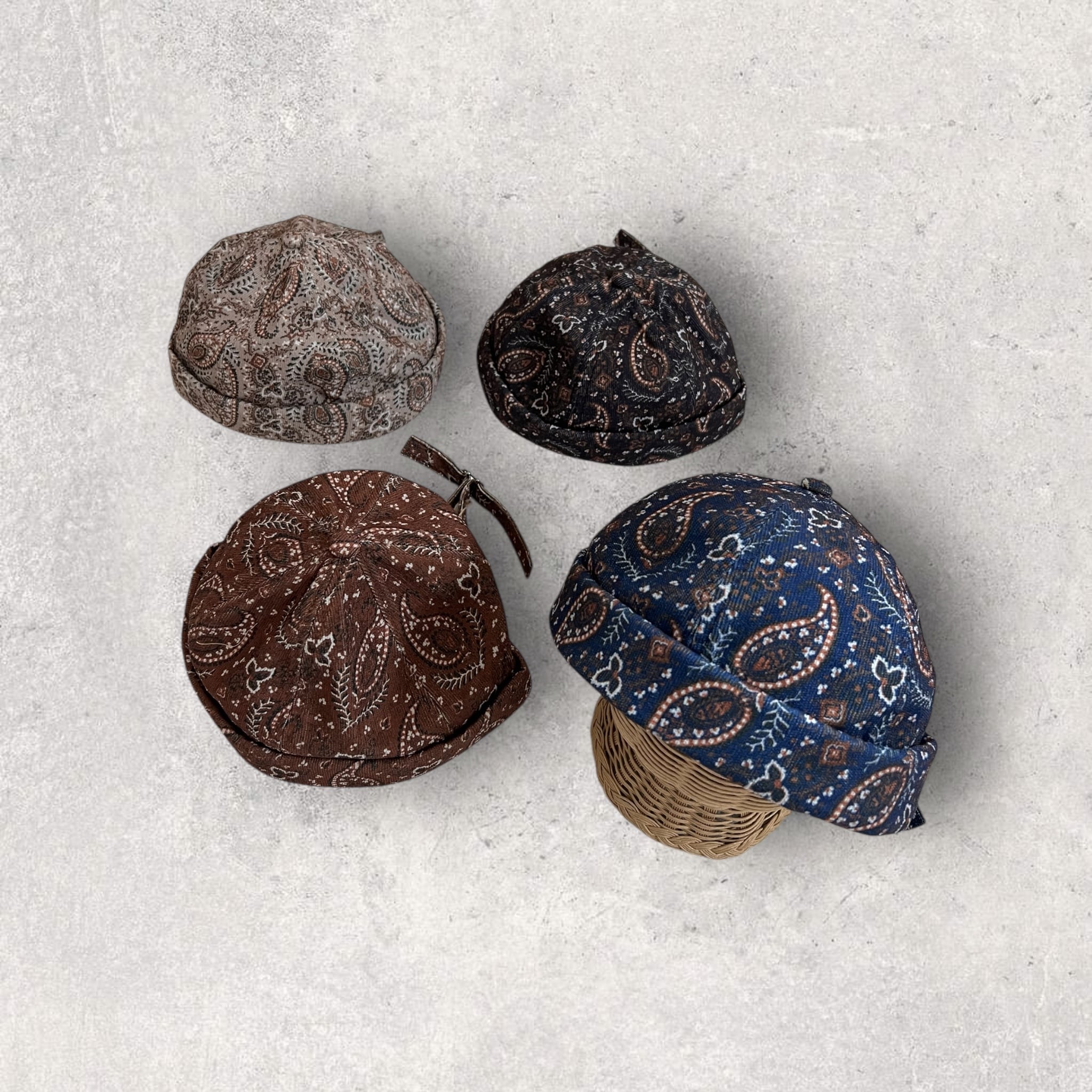 ⌇即納商品(ノーブランド) ⌇color : beige . brown . black . navy ⌇size : 56 ~ 58cm ⚫︎ 調節可能です made in china ※ informationを必ずご一読ください 落ち着いたペイズリー柄のデザインキャップ シンプルなコーデに合わせるだけで、こなれた印象に サイズ調整ができ、ユニセックスで使えるのも魅力✩⃛ デイリーに取り入れやすい一点です