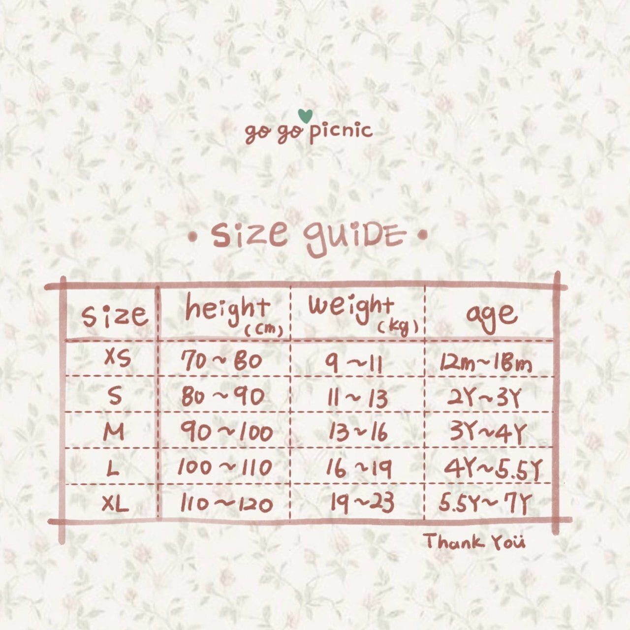 XL :110-120cm / 19-23kg / 5-7y