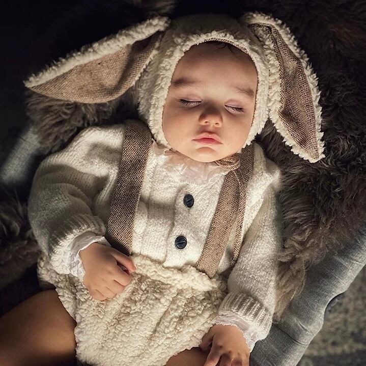 rabbit bonnet and rompers